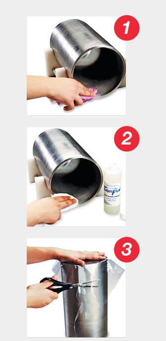 Liquifilm的工作原理清潔 清潔管道內部,去除表面的污染物 涂抹 將Liquifilm水溶性粘合劑涂抹到管道內側。涂抹管道表面需貼膜的整個圓周。 追蹤與切割 用Liquifilm沿著管道邊緣按壓,留下一個壓痕,以追蹤管道的內徑。然后將其折疊成90°角。在壓痕周圍,以管道直徑約三分之一倍的尺寸,將Liquifilm剪成一個圓形。 壓 將Liquifilm的光滑表面壓在管道內粘稠的粘合劑上,以形成氣密密封。如有需要,可在清洗擋板的中心刺一個小孔,使氧氣通過根部間隙逸出或消散。 |